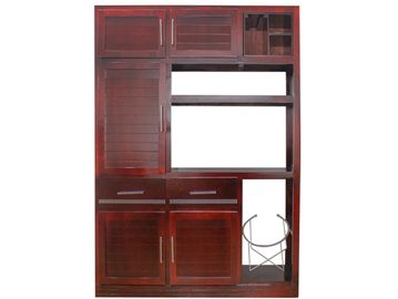 "Porta microondas, doble frutero giratorio, porta garrafón, despensero, cajones multiusos, separador de cubiertos, y fondo oculto"